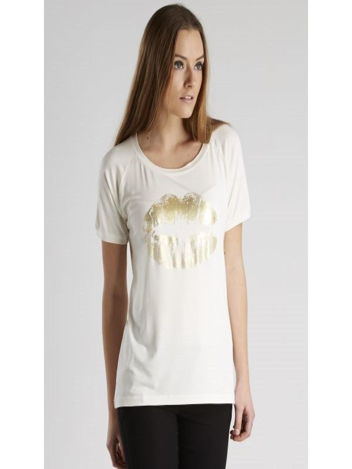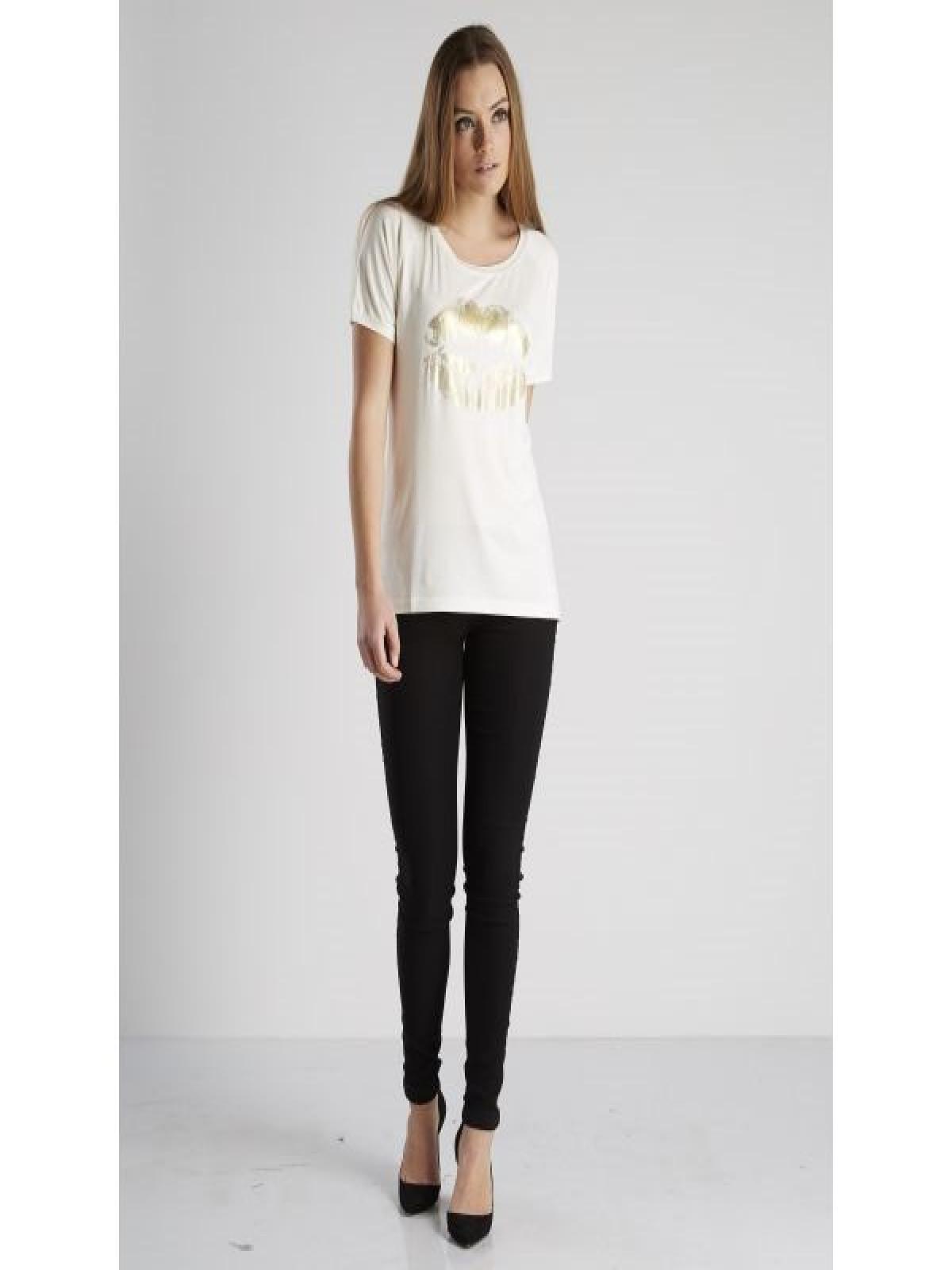 5104-40-110 krém színú póló, elöl arany csók mintával