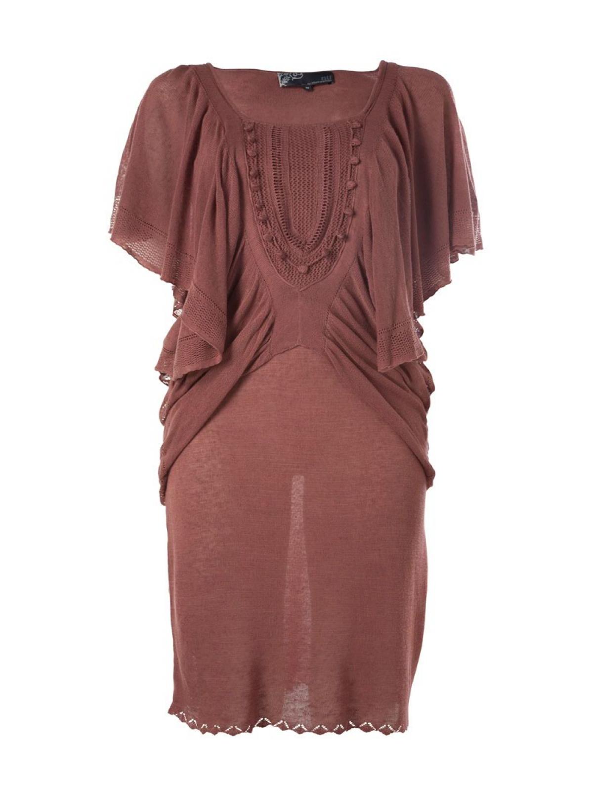 3578-23-659 nü mályva színű ruha vékony kötött anyagú felső része elegánsan szabott horgolt mintás
