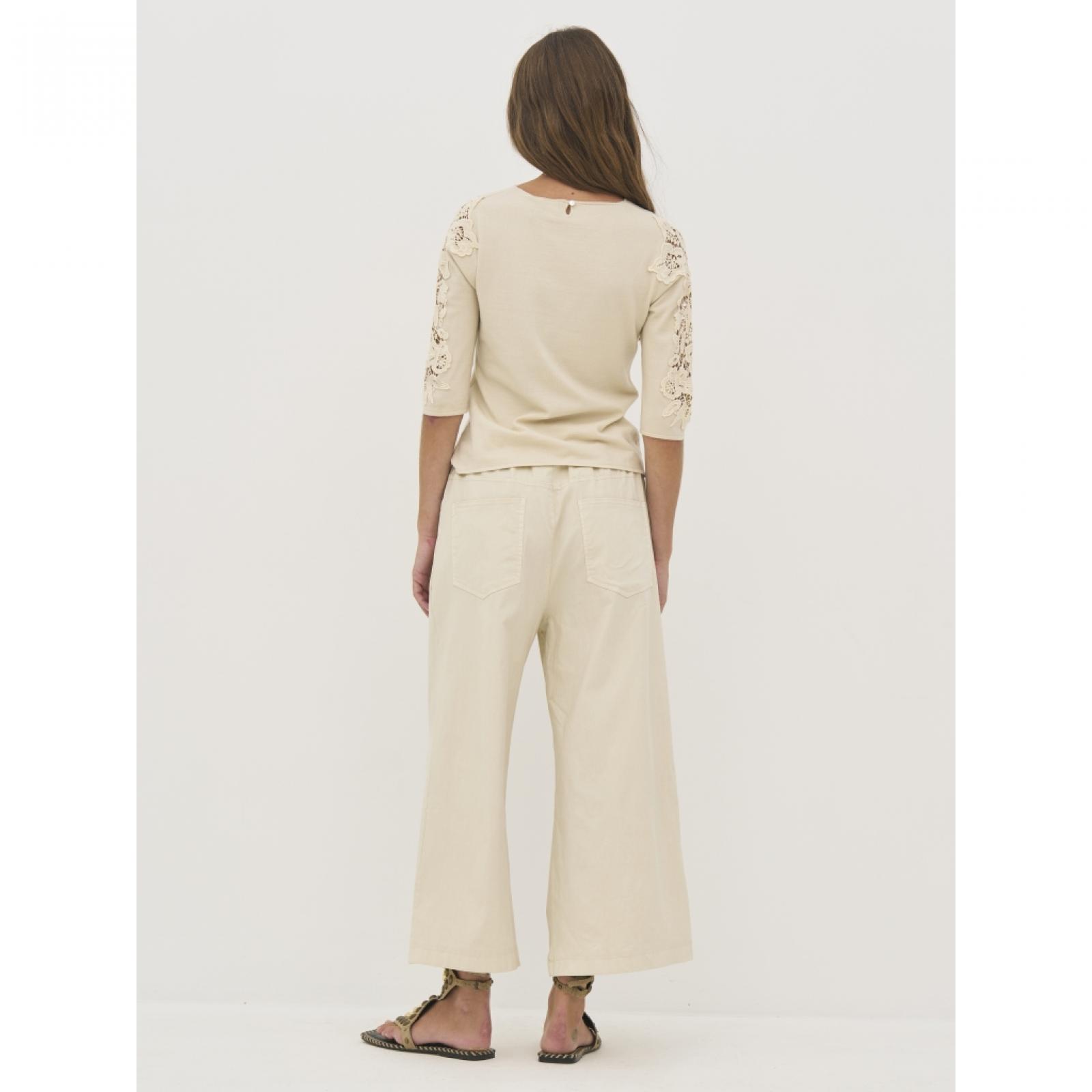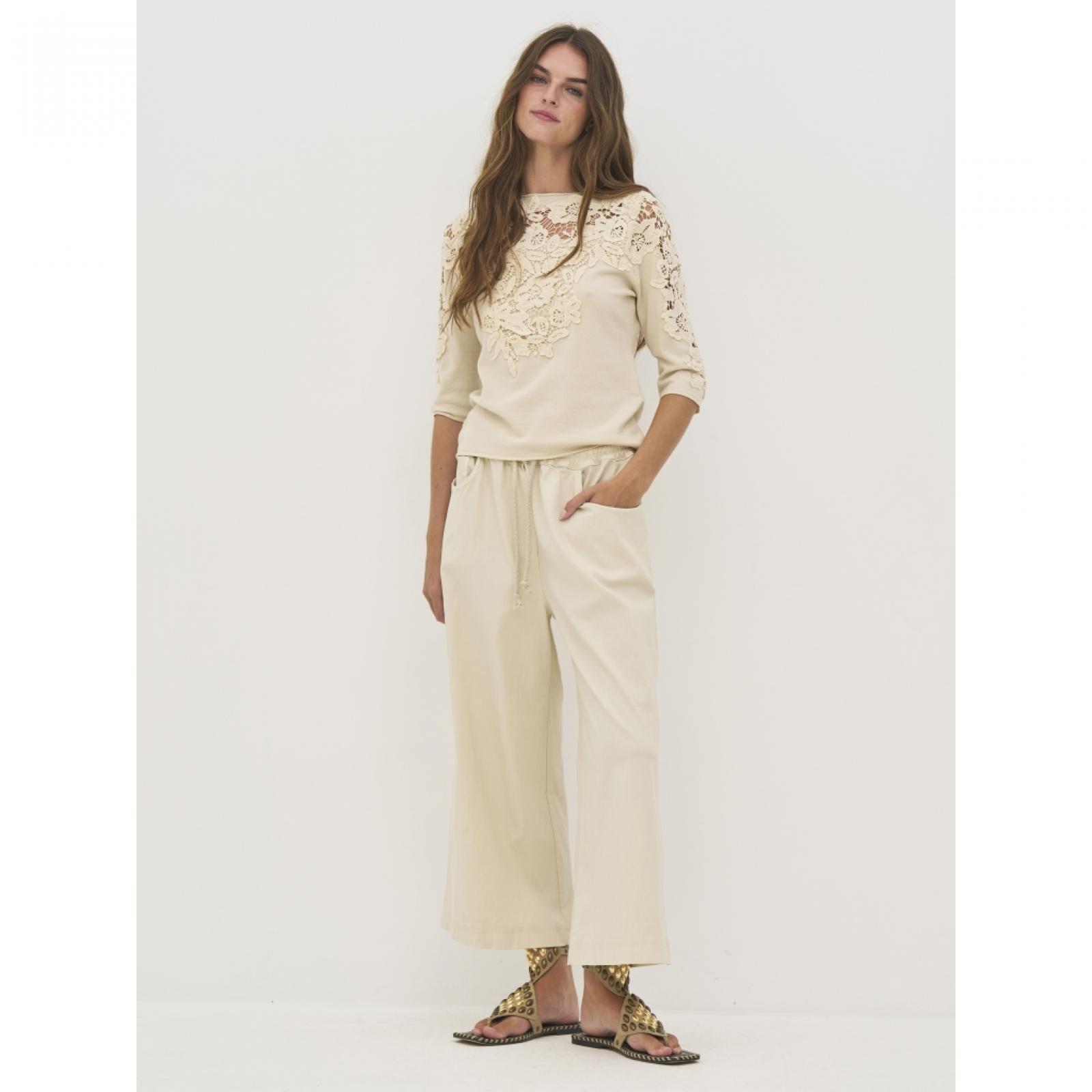 09-10-112 Kényelmes culotte nadrág viszkózkeverékből Ez a modern culotte nadrág tökéletes választás, ha a kényelem és a stílus egyaránt fontos számodra. A puha, rugalmas viszkózkeverék anyag légáteresztő és kellemes viseletet biztosít, miközben extra mozgásszabadságot nyújt a mindennapokban. A bő szárú, culotte fazon laza, mégis trendi megjelenést kínál. A rugalmas derékrész húzózsinórral gondoskodik az állítható és kényelmes illeszkedésről, míg a praktikus oldalsó és hátsó zsebek funkcionális kiegészítőként szolgálnak.