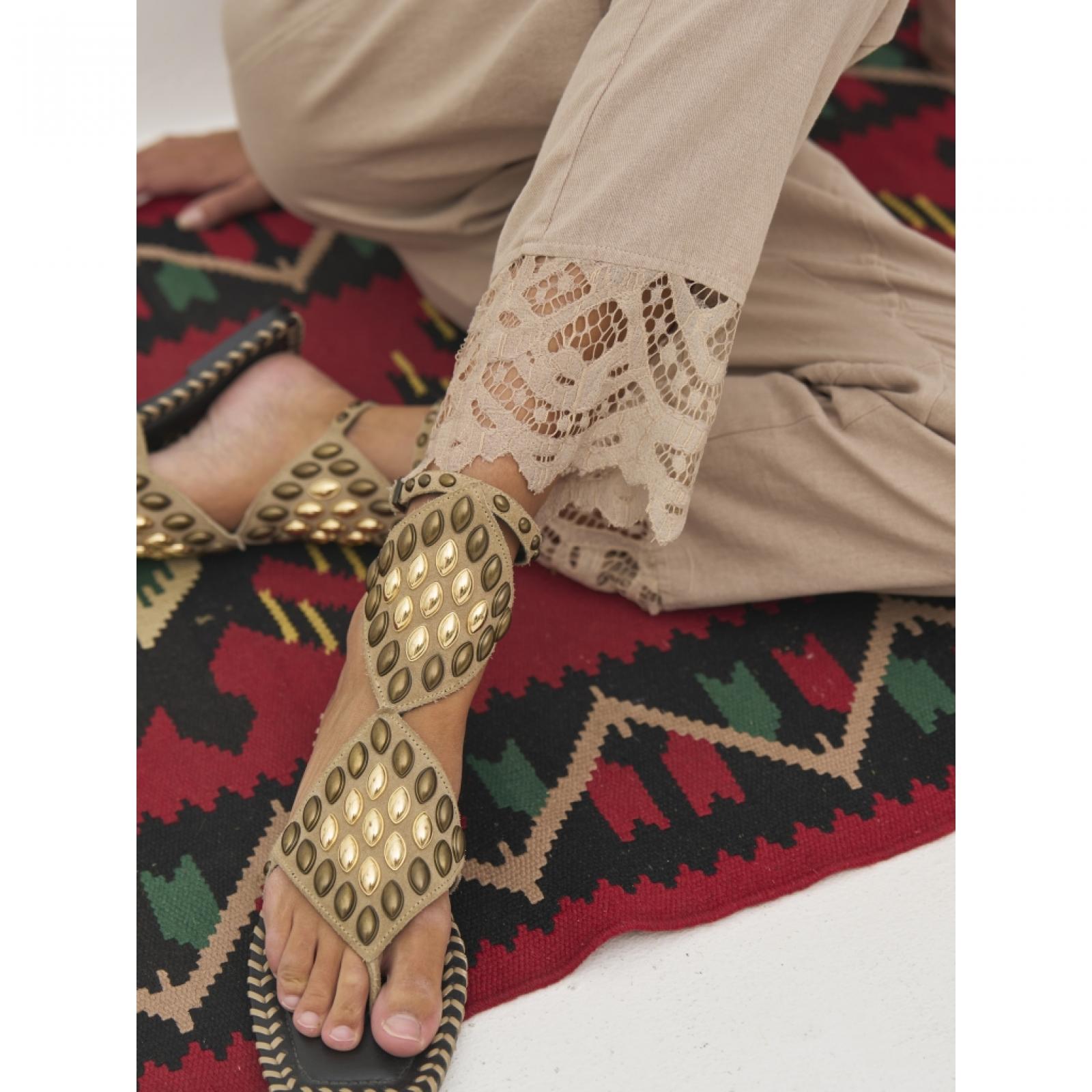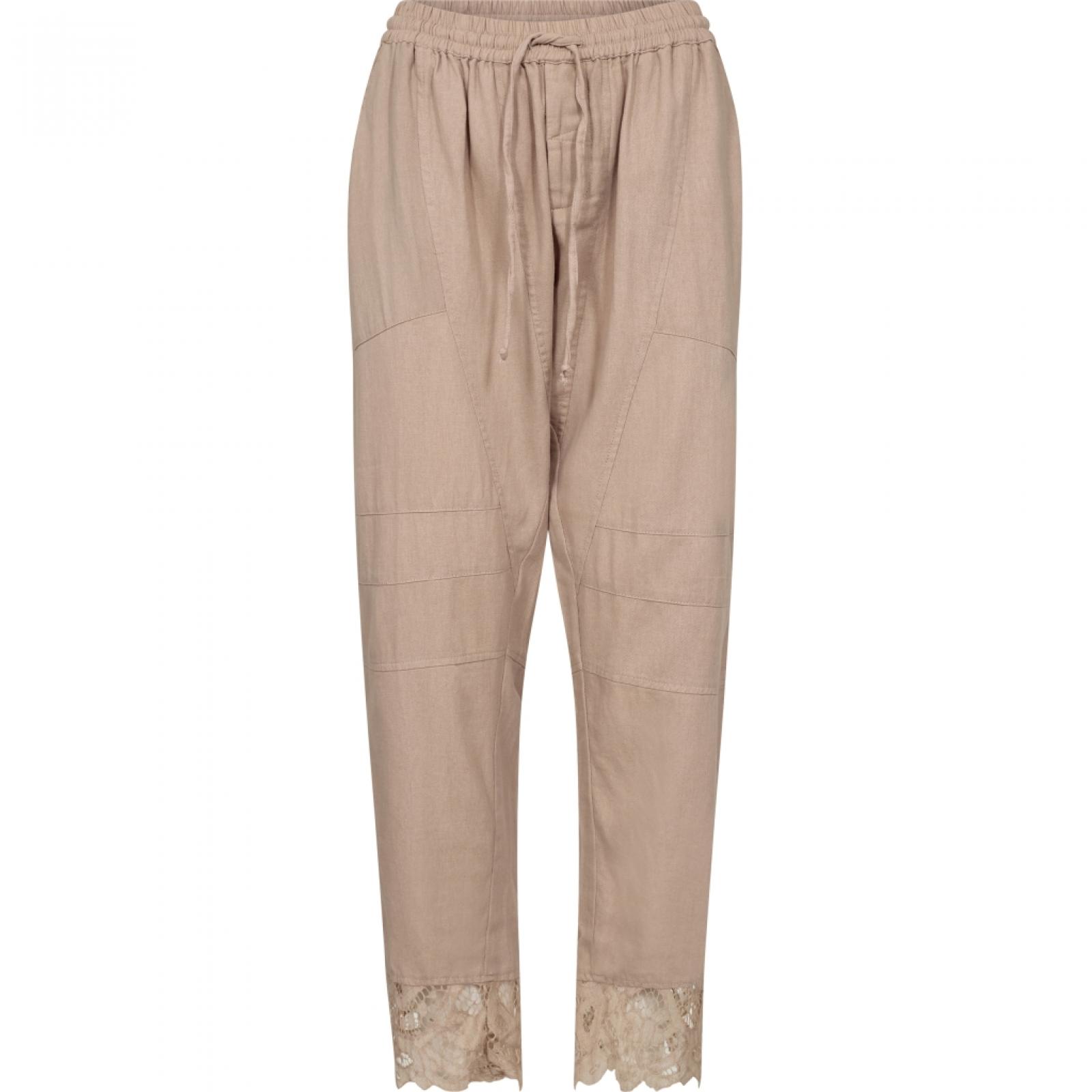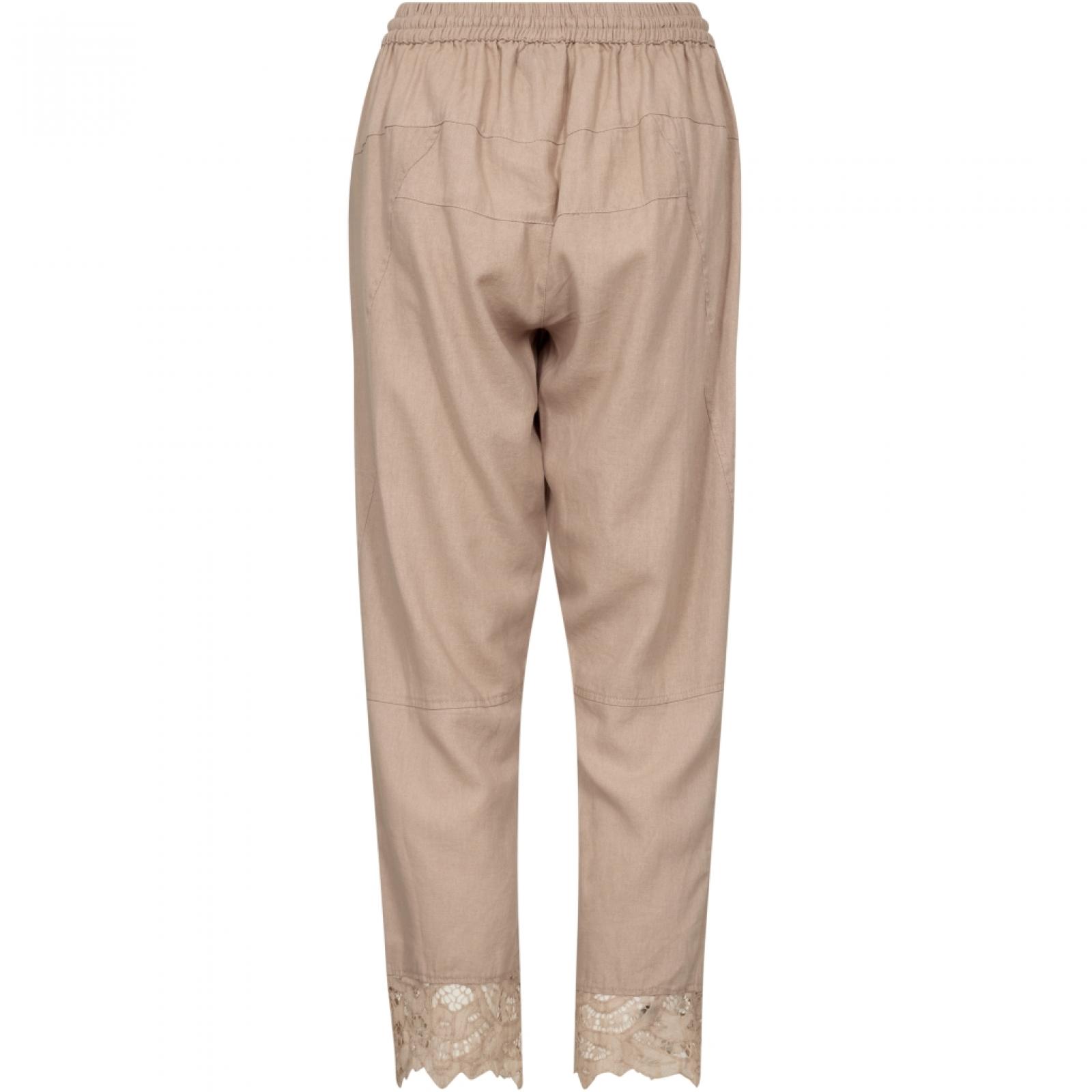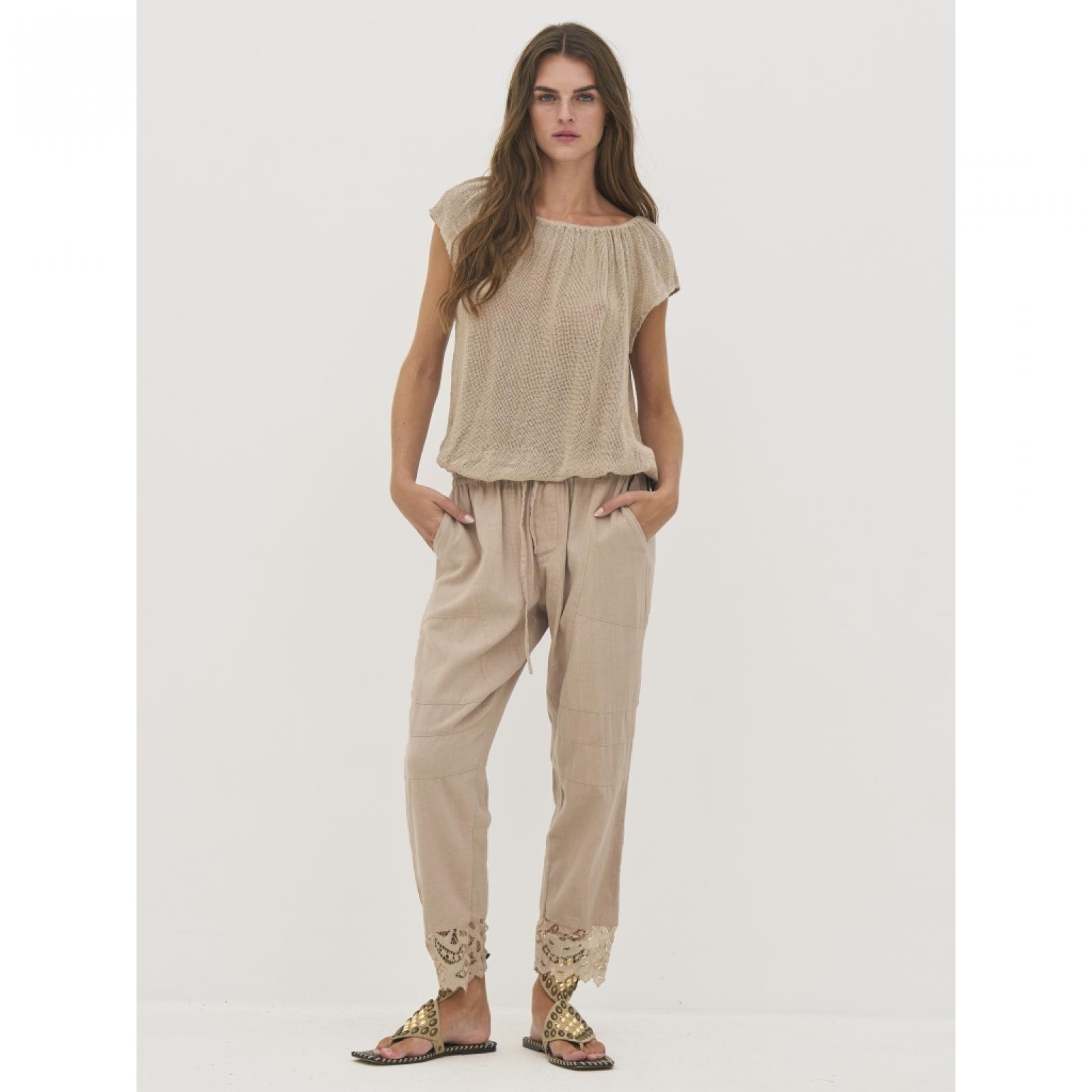8811-10-125 Ez a nadrág puha, mosott pamutanyagból készült, amely könnyű és kényelmes viseletet biztosít. Laza szabású, 7/8-os hosszúsággal, ami légies és nyárias megjelenést eredményez. A derékrészen gumírozás és húzózsinór található, amely rugalmas és kényelmes illeszkedést biztosít. A bokánál elhelyezett finom csipkerészlet nőies csavart ad, és könnyed, dekoratív hatást kölcsönöz a nadrágnak. Derékbőség: XS: 33 / S: 35 / M: 37 / L: 40 / XL: 43 / XXL: 46 Csípőbőség: XS: 50 / S: 52 / M: 54 / L: 57 / XL: 60 / XXL: 63 Külső szárhossz: XS: 91 / S: 91,5 / M: 92 / L: 92,5 / XL: 93 / XXL: 93,5