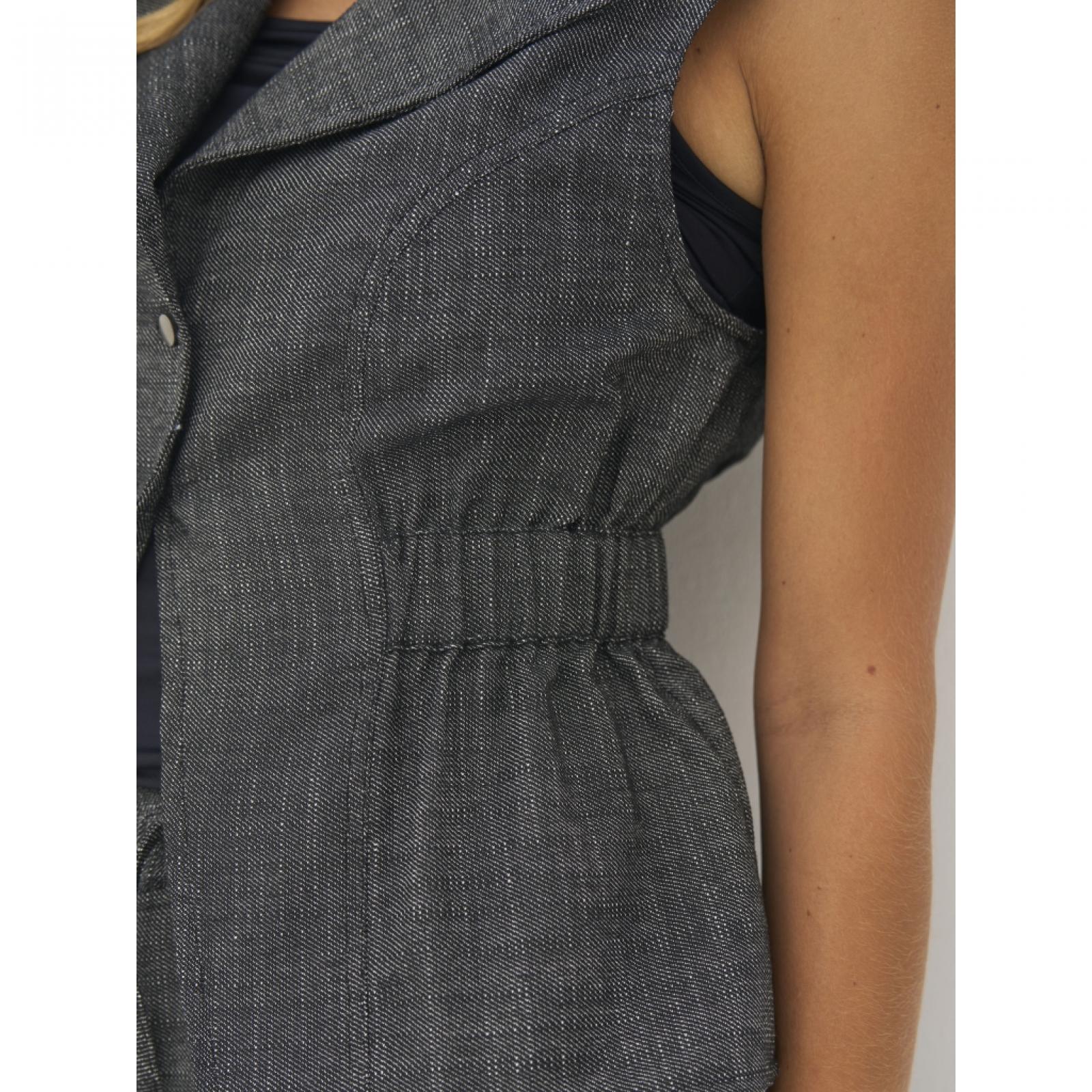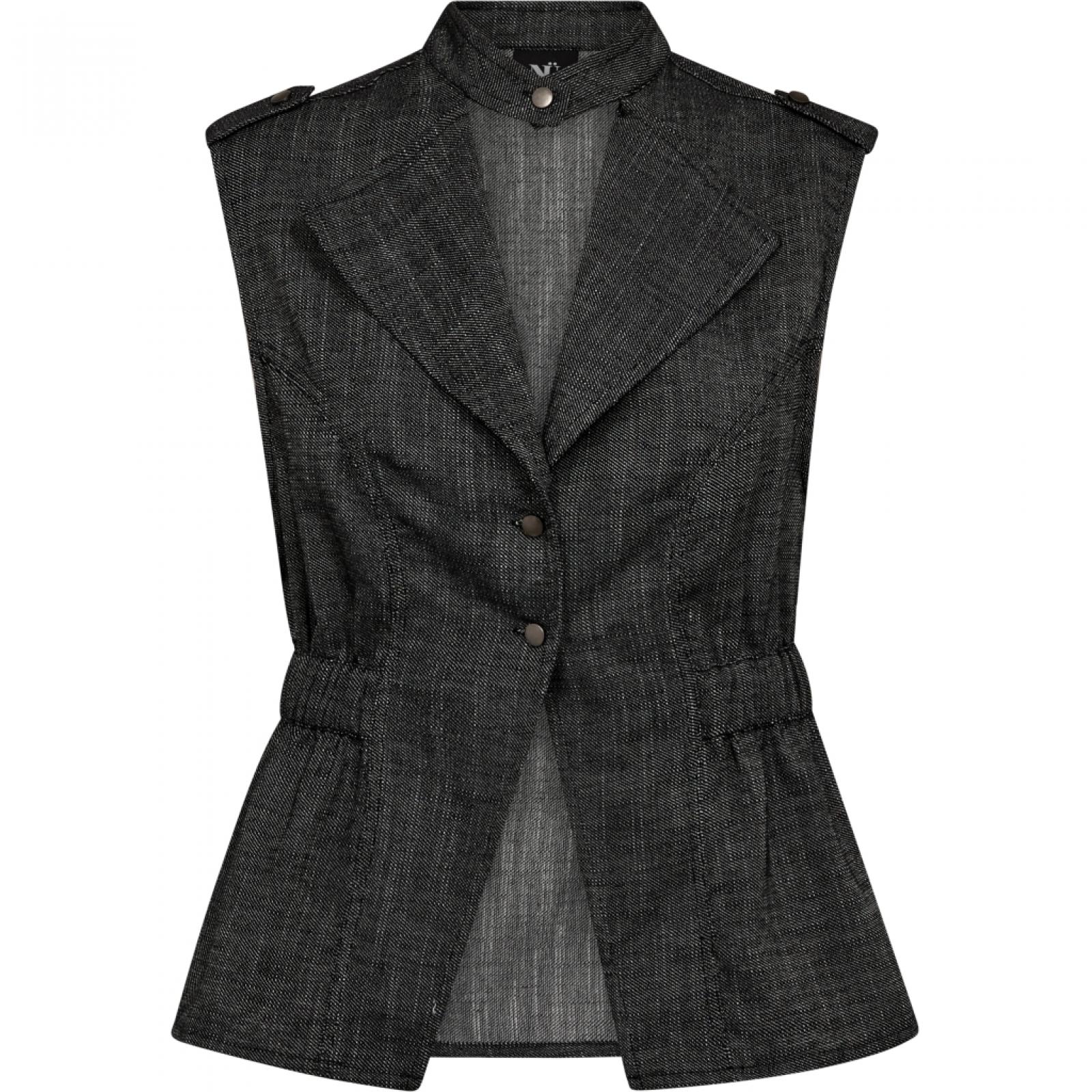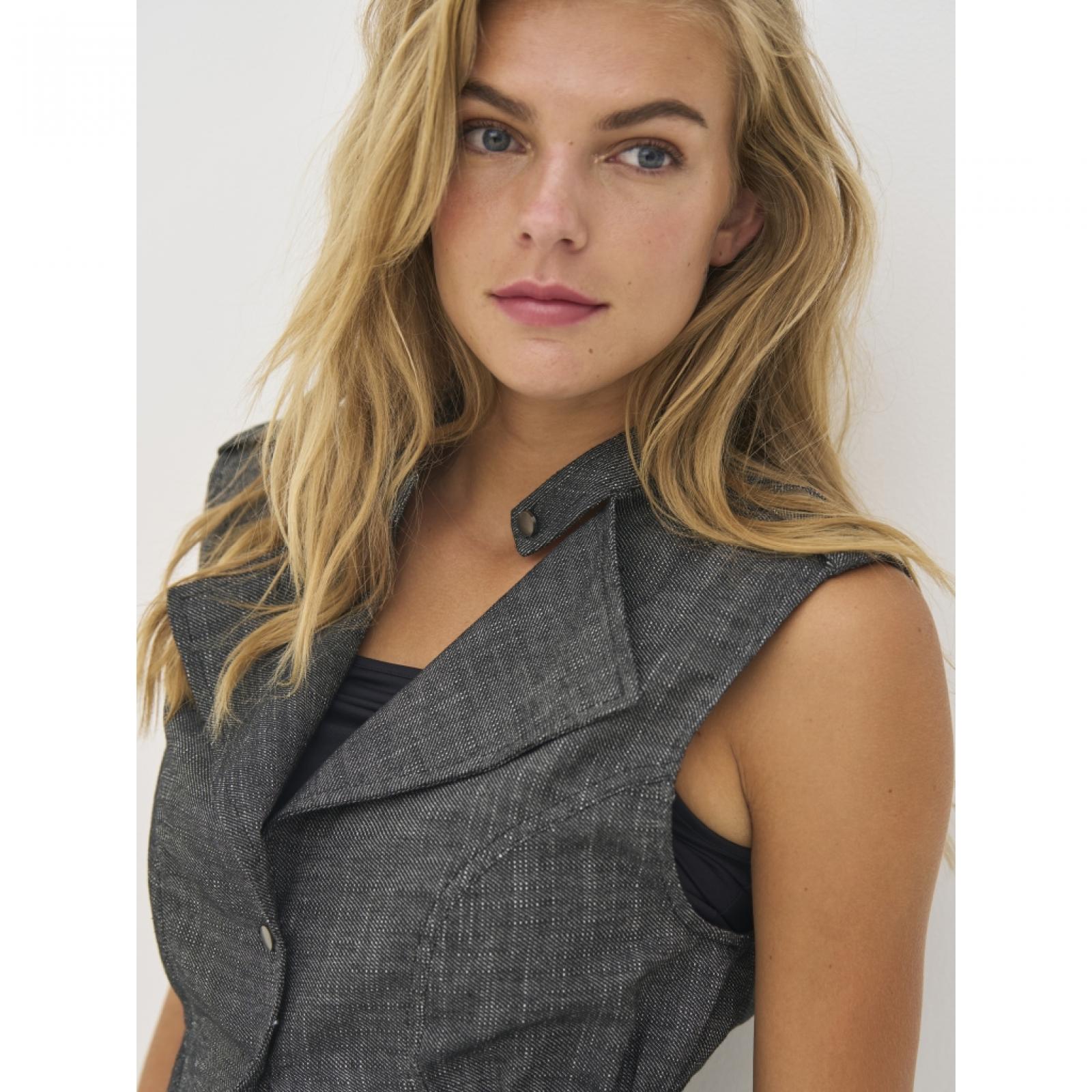8805-44-000 Ez a mellény pamut és len keverékéből készült, amely nyers, strukturált megjelenést ad. Az ujjatlan szabás és a hangsúlyos hajtóka éles, modern hatást kelt, míg a vállrészen található részletek funkcionális jelleget kölcsönöznek. A derékrész enyhe rugalmassága formát ad és kiemeli a sziluettet, az elülső gombos záródás pedig teljessé teszi a letisztult dizájnt. Egy karakteres mellény, amely önmagában vagy réteges összeállítás részeként is jól viselhető.Mellbőség (kerület): XS: 43,5 / S: 45,5 / M: 47,5 / L: 50,5 / XL: 53,5 / XXL: 56,5 Háthossz: XS: 58 / S: 59,5 / M: 61 / L: 62,5 / XL: 64 / XXL: 65,5