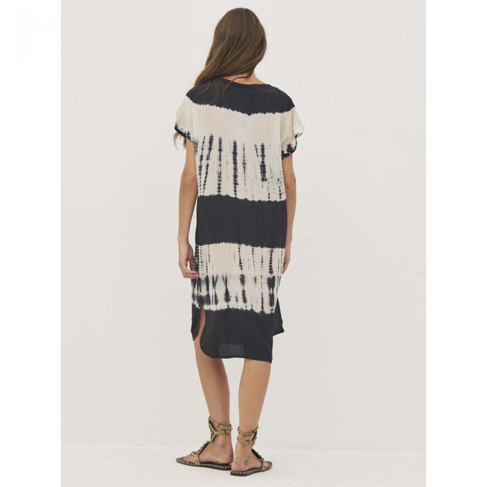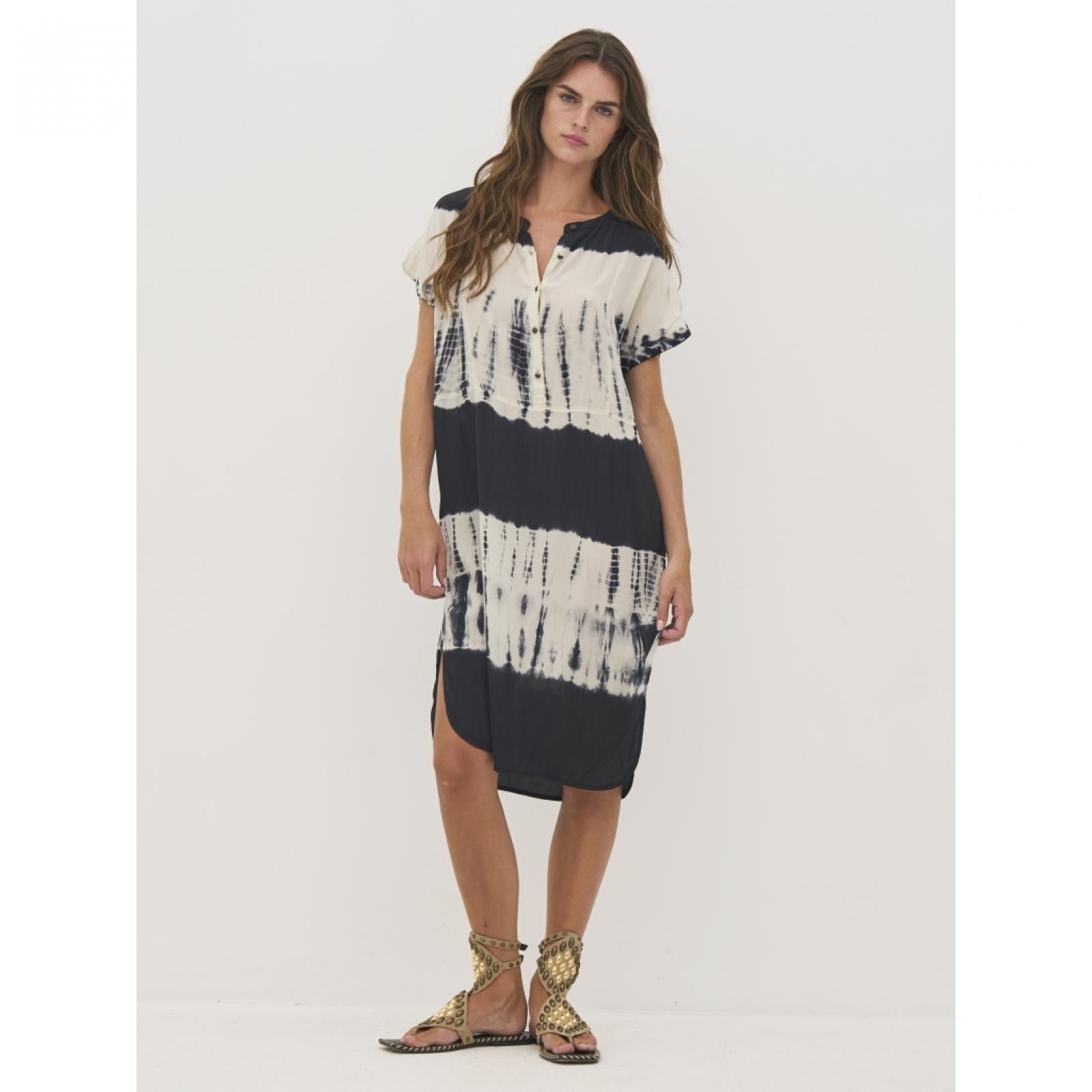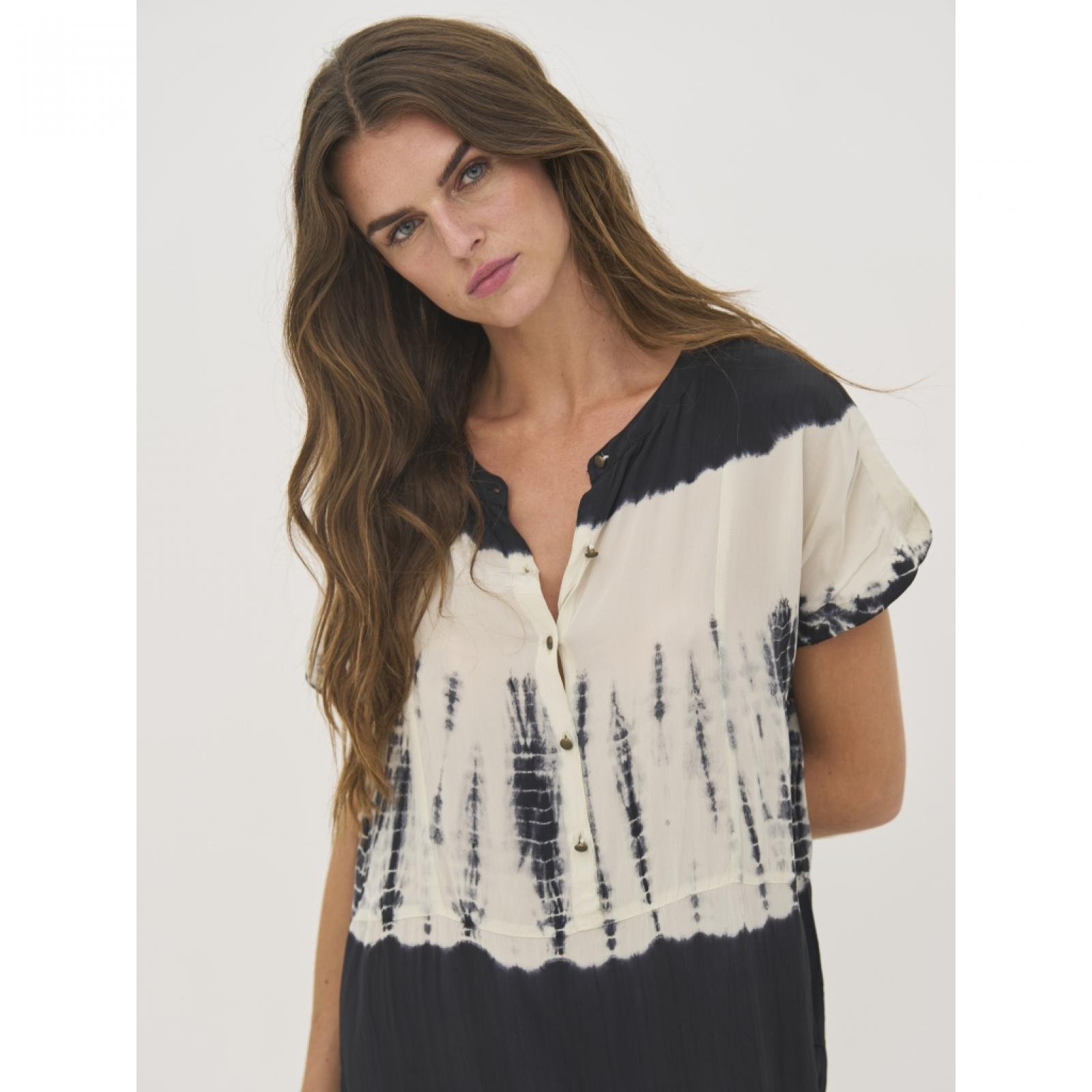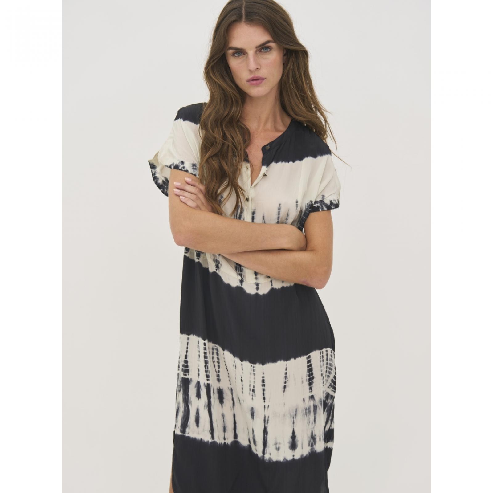 8809-26-000 Ez a tunikaruha 100%-ban viszkózból készült, amely könnyű és légies esést biztosít. Laza szabású, rövid ujjakkal és oldalsó hasítékokkal rendelkezik, így kényelmes viseletet és szabad mozgást nyújt. Az elülső félgombos záródás egyszerű, lezser megjelenést kölcsönöz, így a ruha könnyen variálható. Az egyedi minta minden darabot különlegessé tesz, és művészi hangulatot ad neki. Mellbőség (karlyuknál mérve): XS: 53 / S: 55 / M: 57 / L: 60 / XL: 63 / XXL: 66 Csípőbőség (válltól 62 cm-re mérve): XS: 54 / S: 56 / M: 58 / L: 61 / XL: 64 / XXL: 67 Háthossz: XS: 103 / S: 104,5 / M: 106 / L: 107,5 / XL: 109 / XXL: 110,5