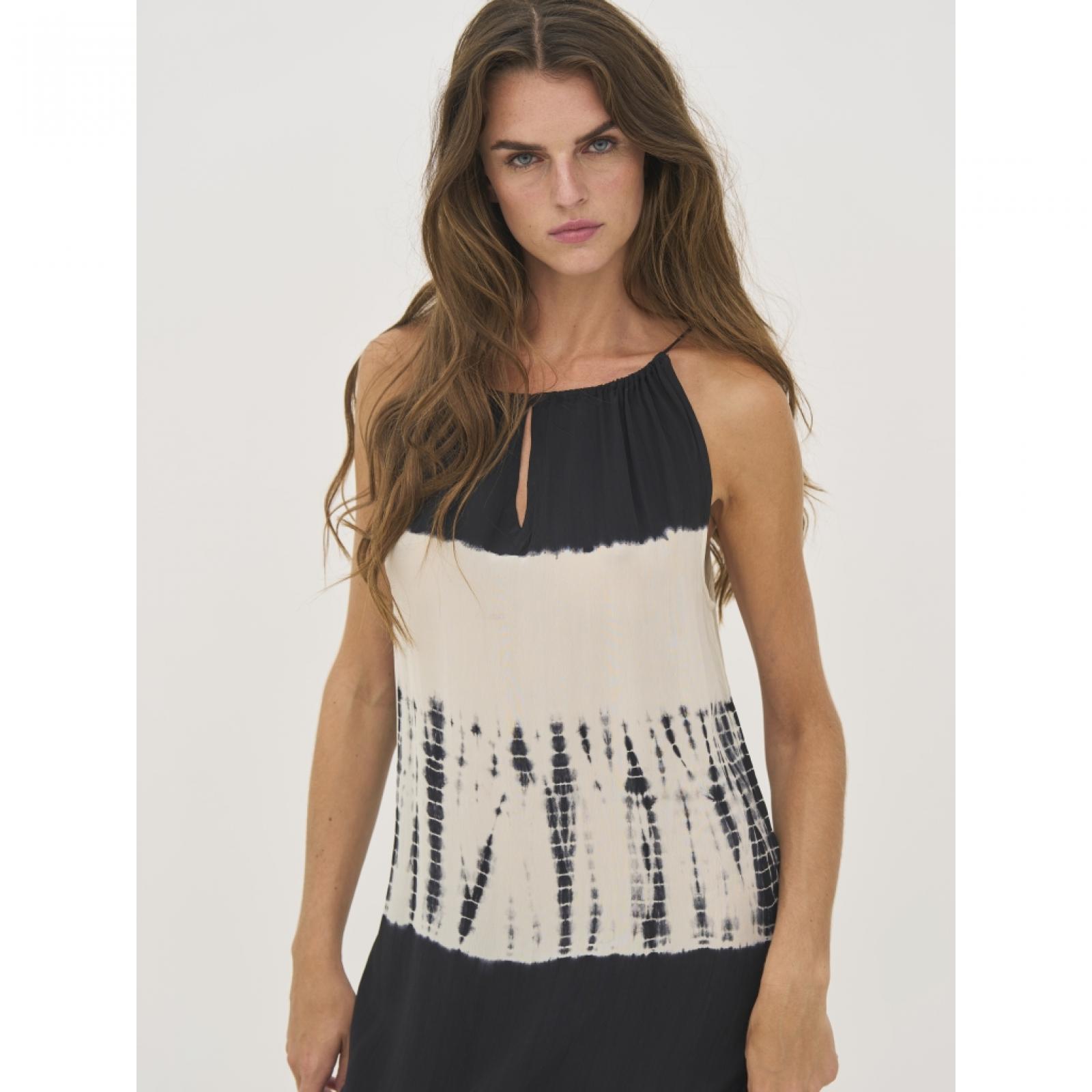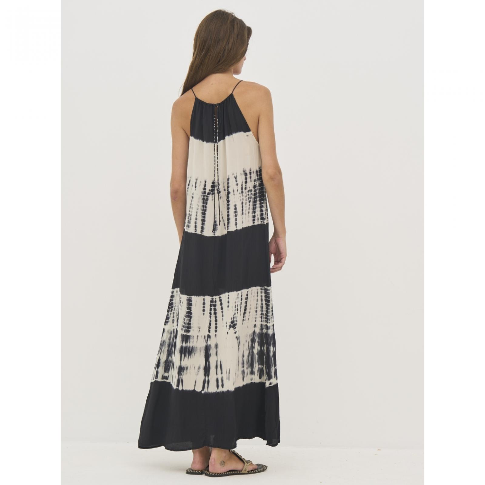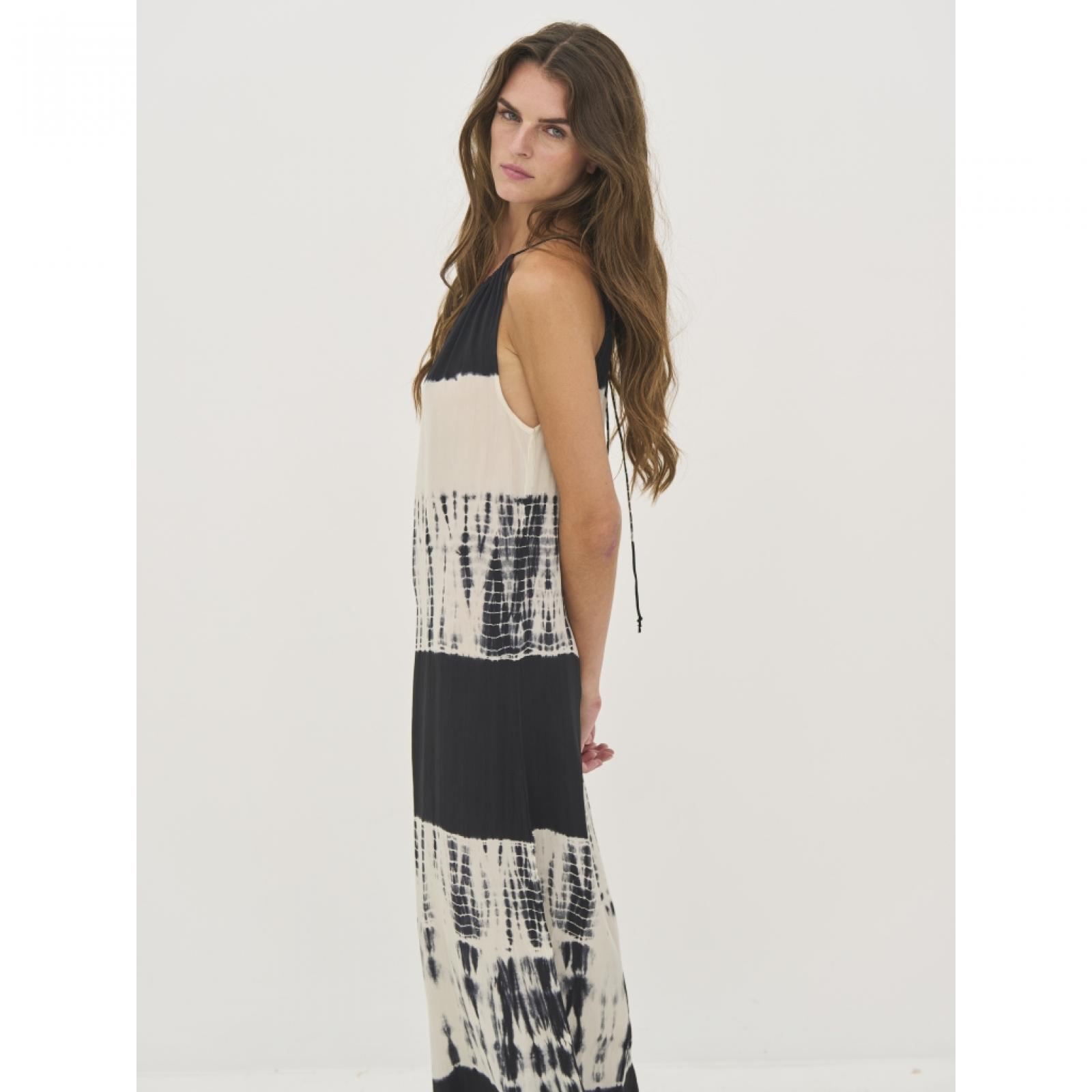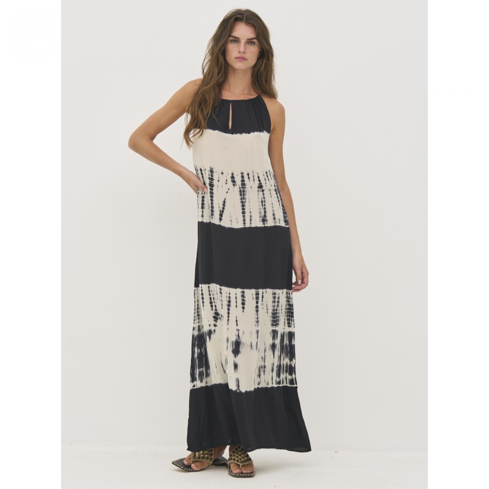 8809-23-000 Ez a hosszú maxiruha 100%-ban viszkózból készült, amely könnyű és puha esést biztosít. Állítható pántokkal rendelkezik a könnyű méretre igazítás érdekében, míg a laza sziluett szabad mozgást és kényelmet nyújt. Az egyedi minta minden darabot különlegessé tesz, és művészi hangulatot kölcsönöz neki. Egy könnyű, viszkózból készült maxiruha, amely tökéletes választás nyárra – viseld szandállal a hétköznapokon, vagy egészítsd ki kiegészítőkkel egy elegánsabb megjelenésért.Mellbőség (karlyuknál mérve): XS: 47 / S: 49 / M: 51 / L: 54 / XL: 57 / XXL: 60 Csípőbőség (válltól 62 cm-re mérve): XS: 55 / S: 57 / M: 59 / L: 62 / XL: 65 / XXL: 68 Háthossz: XS: 135 / S: 135 / M: 135 / L: 135 / XL: 135 / XXL: 135