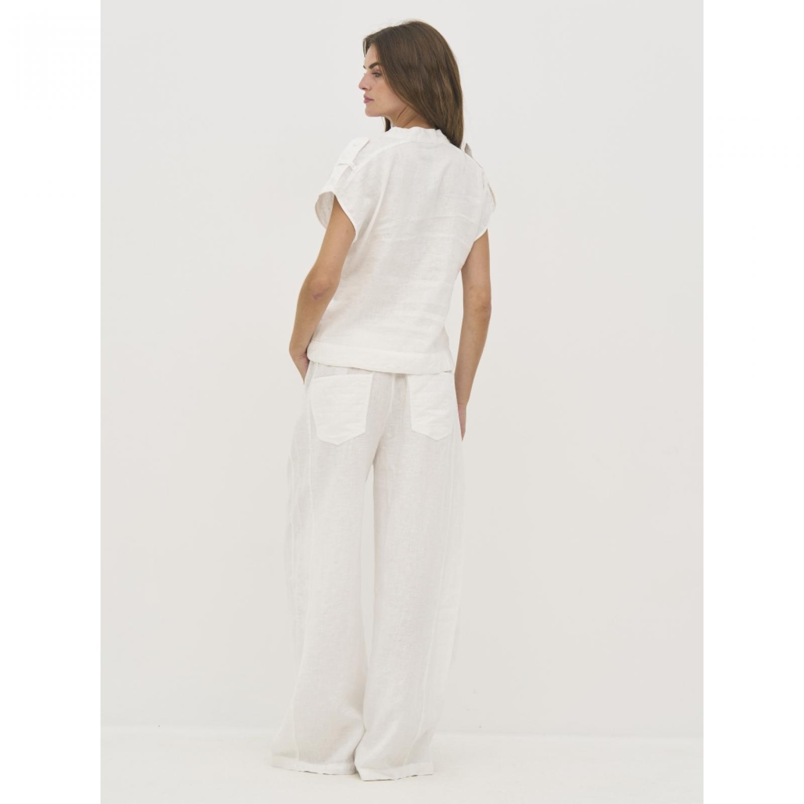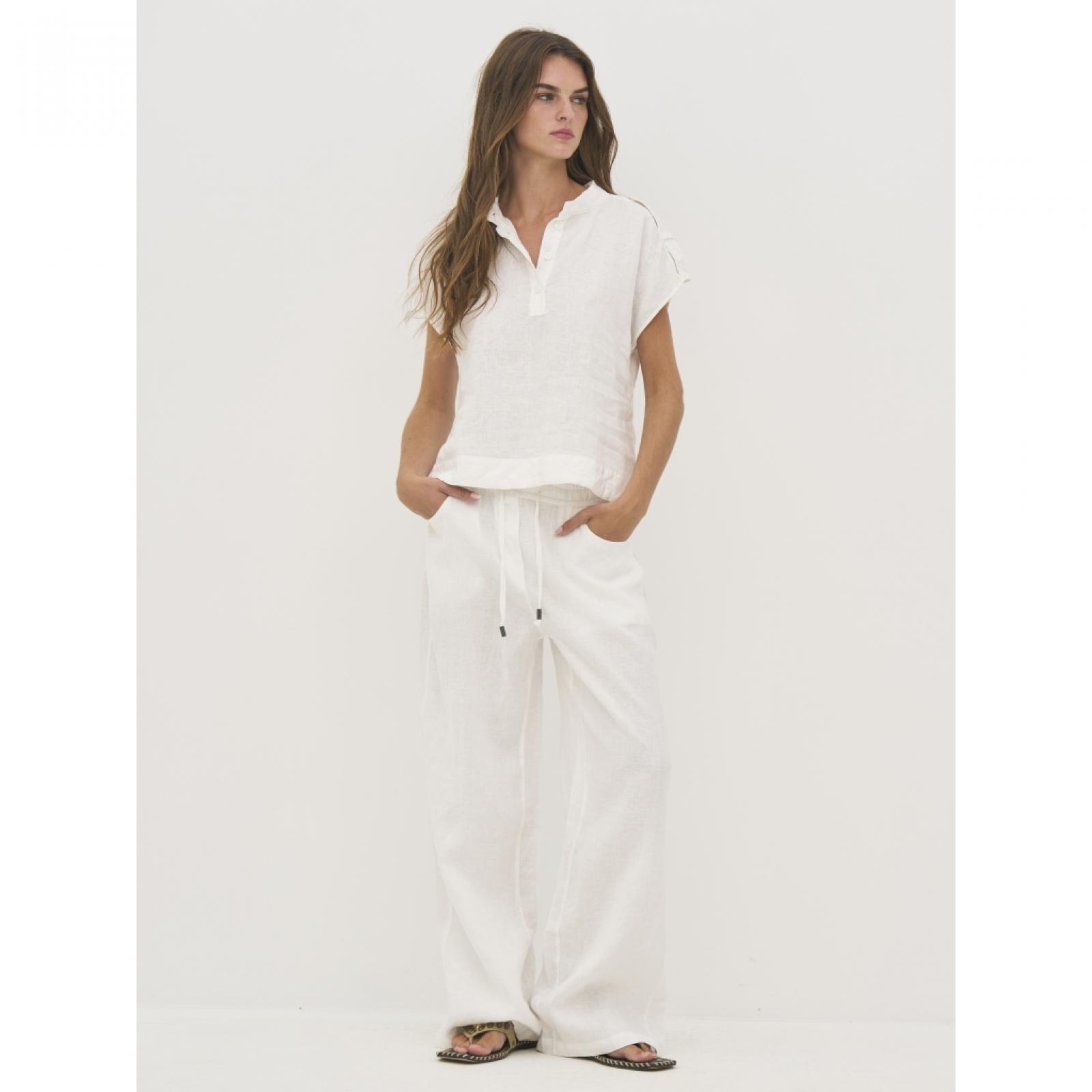 8800-46-100 Ez a felső len anyagból készült, így könnyű és jól szellőző – ideális meleg napokra. Egyszerű, egyenes szabású, amely finoman követi a test vonalát, laza megjelenést biztosítva. Elöl rövid gombos záródással rendelkezik, ami klasszikus és rendezett hatást ad. A hátoldala letisztult és egyszerű.Mellbőség: XS: 104 / S: 108 / M: 112 / L: 118 / XL: 124 / XXL: 130 Derék: XS: 92 / S: 96 / M: 100 / L: 106 / XL: 112 / XXL: 118 Elülső hossz: XS: 57 / S: 58,5 / M: 60 / L: 61,5 / XL: 63 / XXL: 64,5 Hátsó hossz: XS: 57 / S: 58,5 / M: 60 / L: 61,5 / XL: 63 / XXL: 64,5