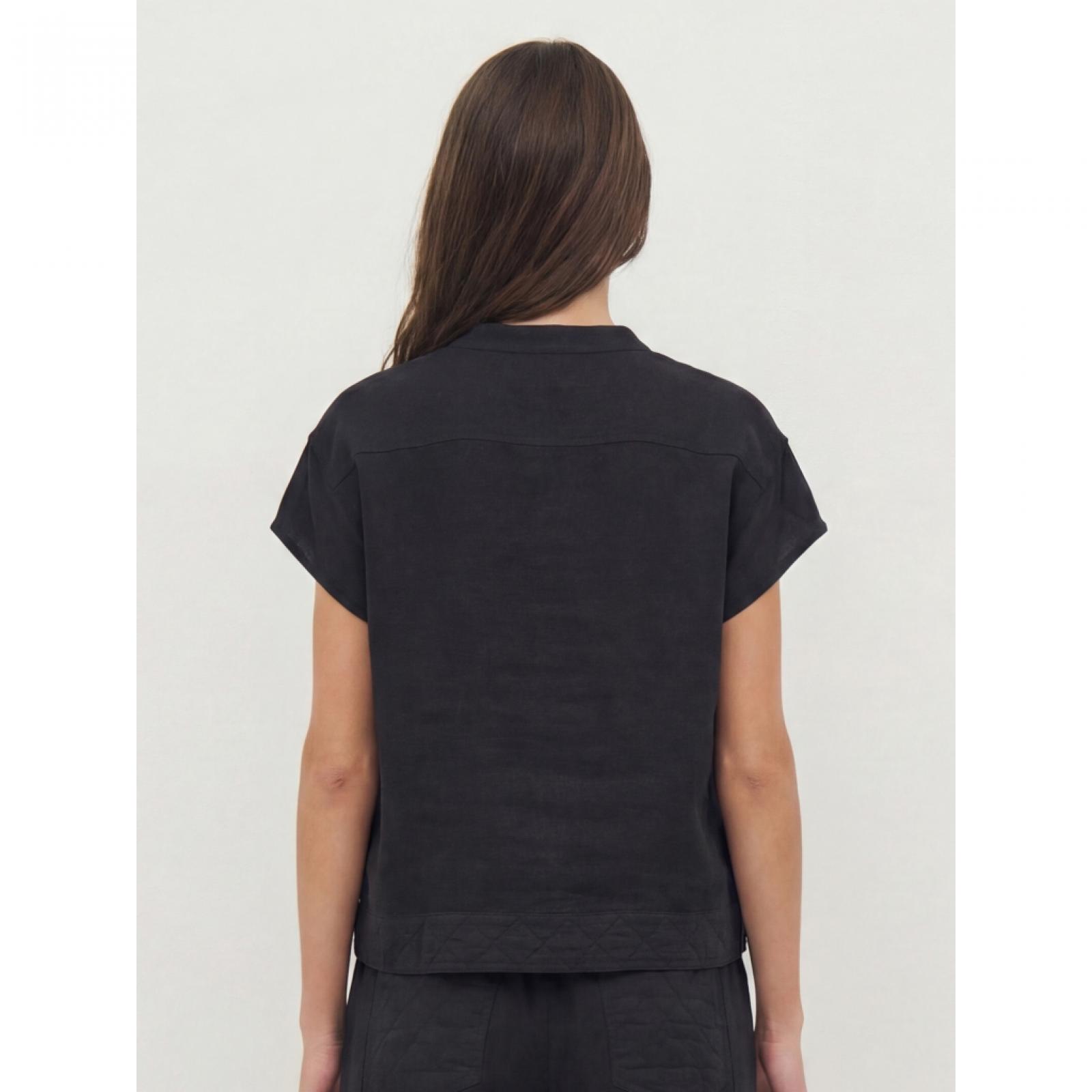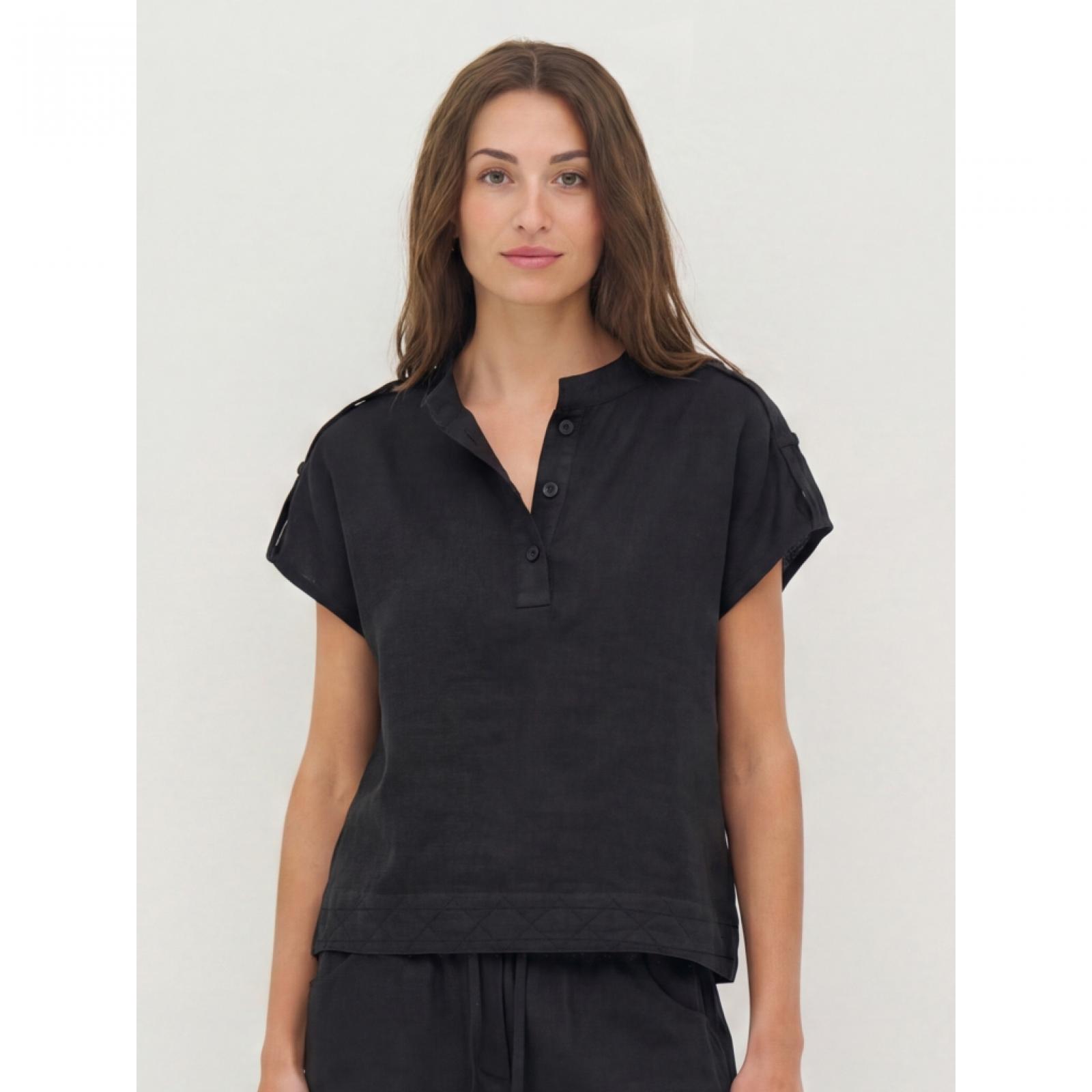 8800-46-000 Ez a felső len anyagból készült, így könnyű és jól szellőző – ideális meleg napokra. Egyszerű, egyenes szabású, amely finoman követi a test vonalát, laza megjelenést biztosítva. Elöl rövid gombos záródással rendelkezik, ami klasszikus és rendezett hatást ad. A hátoldala letisztult és egyszerű.Mellbőség: XS: 104 / S: 108 / M: 112 / L: 118 / XL: 124 / XXL: 130 Derék: XS: 92 / S: 96 / M: 100 / L: 106 / XL: 112 / XXL: 118 Elülső hossz: XS: 57 / S: 58,5 / M: 60 / L: 61,5 / XL: 63 / XXL: 64,5 Hátsó hossz: XS: 57 / S: 58,5 / M: 60 / L: 61,5 / XL: 63 / XXL: 64,5