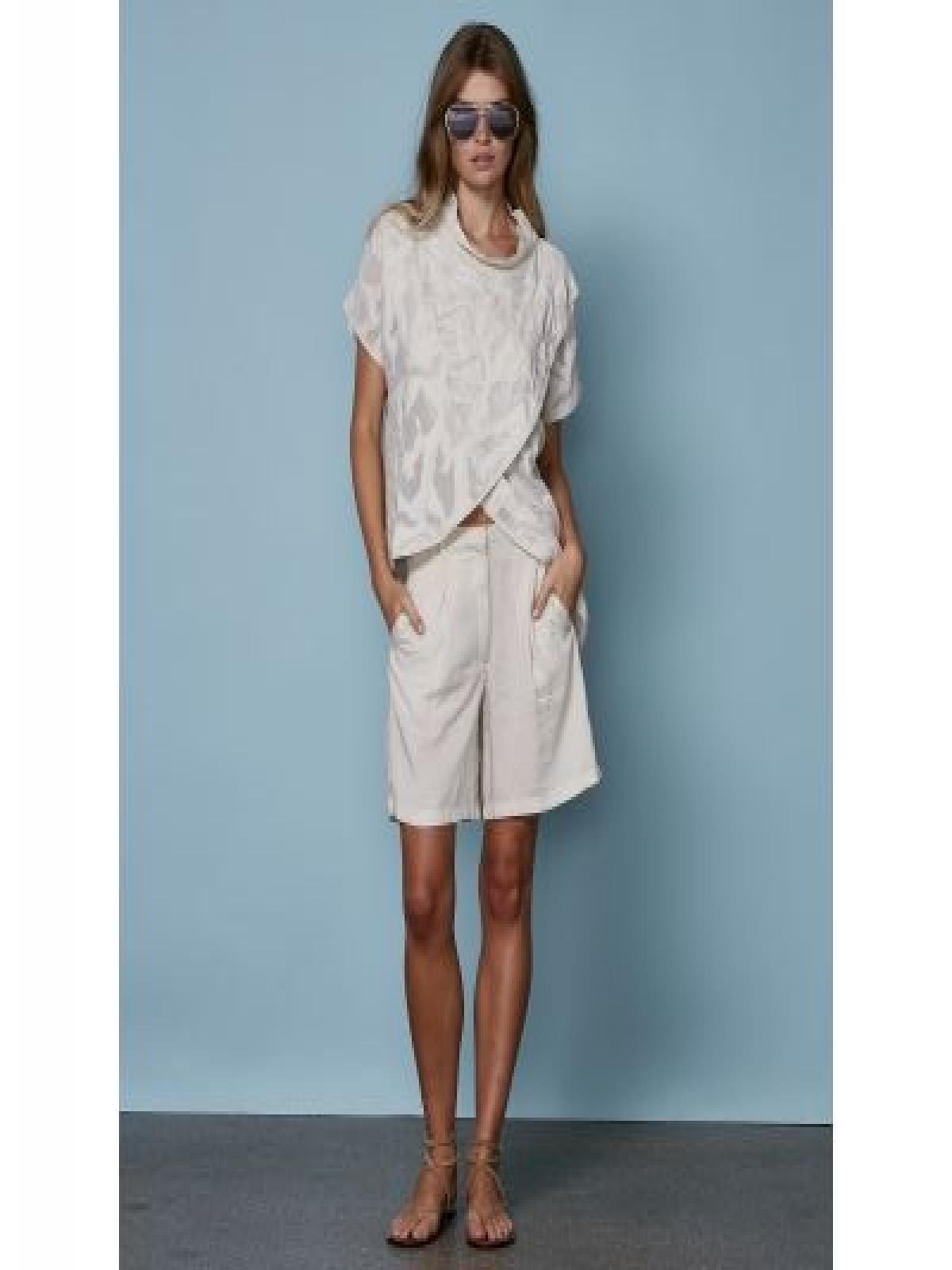 8404-46-112 A felső egyedi, aszimmetrikus szabású, elülső átfedéssel és enyhén tekercselt gallérral rendelkezik, amely modern és jellegzetes kifejezést ad. A könnyű anyag átlátszó mintákkal díszített, izgalmas kontrasztot és kifinomult megjelenést teremtve. Mellbőség: XS: 110 / S: 114 / M: 118 / L: 124 / XL: 130 / XXL: 136 Derékbőség: XS: 104 / S: 108 / M: 112 / L: 118 / XL: 124 / XXL: 130 Háthossz: XS: 63 / S: 64,5 / M: 66 / L: 67,5 / XL: 69 / XXL: 70,5