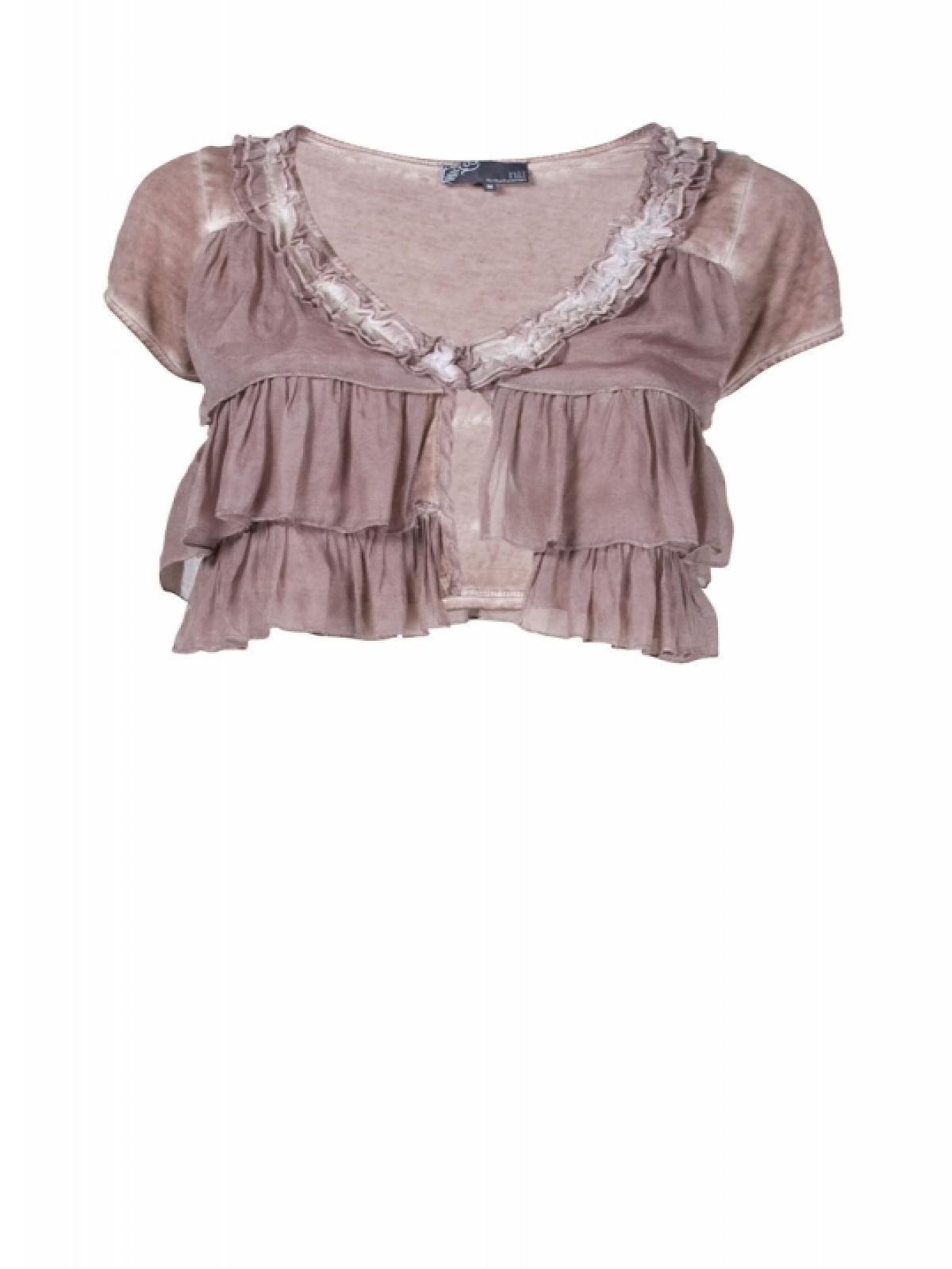 3243-55-660 nü by staff bordó rövid kardigán, elöl rakott díszítéssel, nyaka körben anyagdíszítéses, egy kapoccsal zárható, nagyon finom és elegáns darab