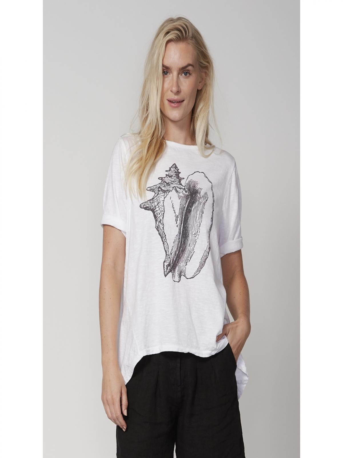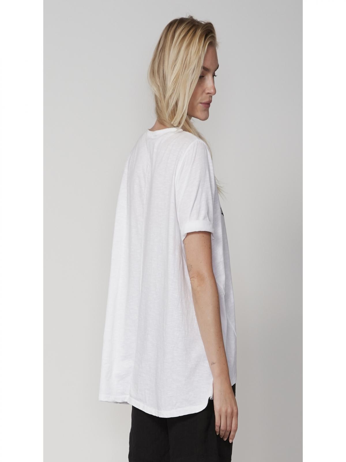 7628-54-110 laza fazonú, elöl egyedi lenyomattal díszített póló