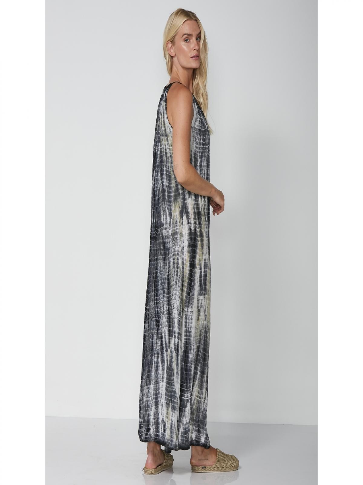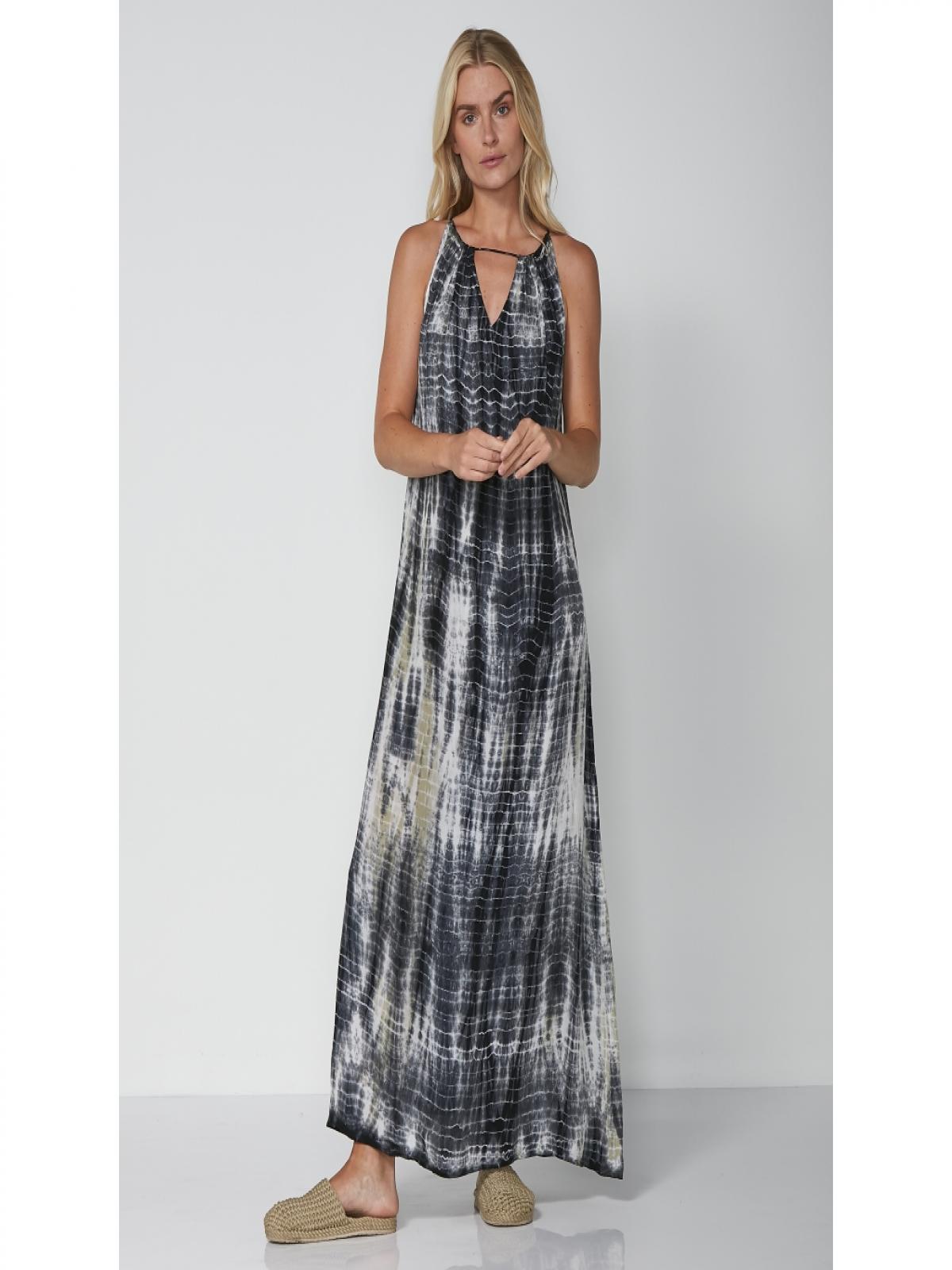 7606-23-309 Ez a gyönyörű maxi ruha krém,-kék-keki színű) tökéletes választás minden olyan alkalomra, ahol kényelmesen és elegánsan szeretnéd érezni magad. A ruha könnyű és sima anyagból készült, kézzel festett mintával, elöl és hátul is V-kivágással, mely egyedi és nőies megjelenést kölcsönöz. Könnyű és légies anyagának köszönhetően ideális nyári napokra és meleg estékre is. A ruha mindennapi viseletre és hivatalosabb eseményekre egyaránt tökéletes