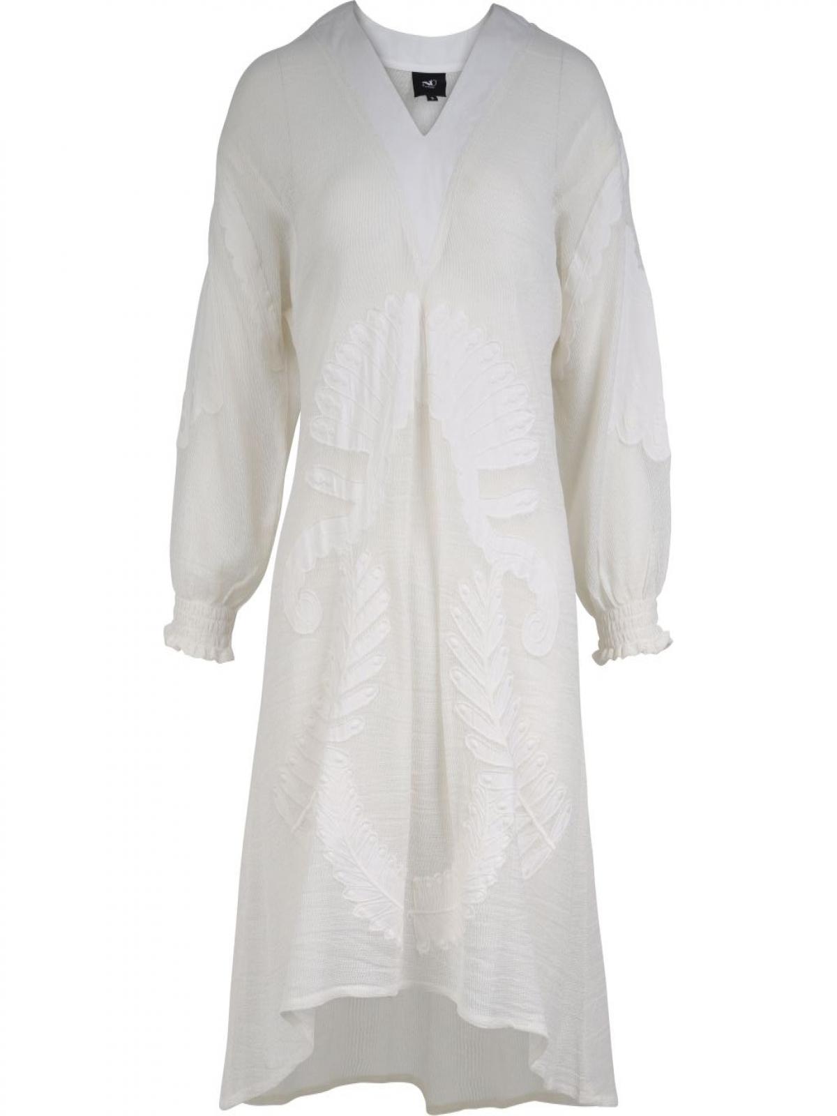 8314-26-110 Yaina Tunic, gyönyörű A vonalú tunika, elöl és az ujján finom hímzéssel díszítve.